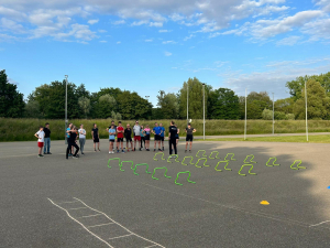 Vandaag deden de opleidingsgroep en een aantal volwassenen mee aan een looptraining door Rik Goethals.